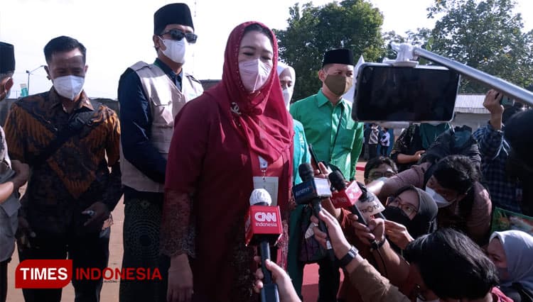 TIMES Jombang/Putri Abdurrahman Wahid (Gus Dur) Yeny Wahid saat diwawancarai oleh awak media. (FOTO: Moh Ramli/TIMES Indonesia)