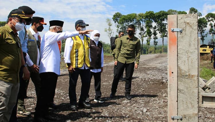 TIMES Jombang/Sekjen PUPR RI Mohammad Zainal Fatah dampingi Wapres RI KH Ma'ruf Amin meninjau lokasi pembangunan Hunian Sementara (Huntara) bagi korban terdampak erupsi Gunung Semeru di Desa Sumbermujur, Kecamatan Candipuro, Kabupaten Lumajang.